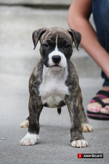 Предлагаем для продажи щенков стаффорда (РКФ) . Родились 22 июня 2012г. . Сейчас им 2 месяца. Документы РКФ, клейма. Родители стандартного роста, крепкого телосложения, титулованные. Папа привезен из американского питомника. На продажу: 1 чёрный кобель, 1 тигровый кобель, 1 чёрная сука. Больше фото вышлю на почту. Родители представлены на фото, папа чёрный с белым, мама голубо-тигровая. Родословная щенков 50% стаффорды США. Чёрный кобель 25тр.